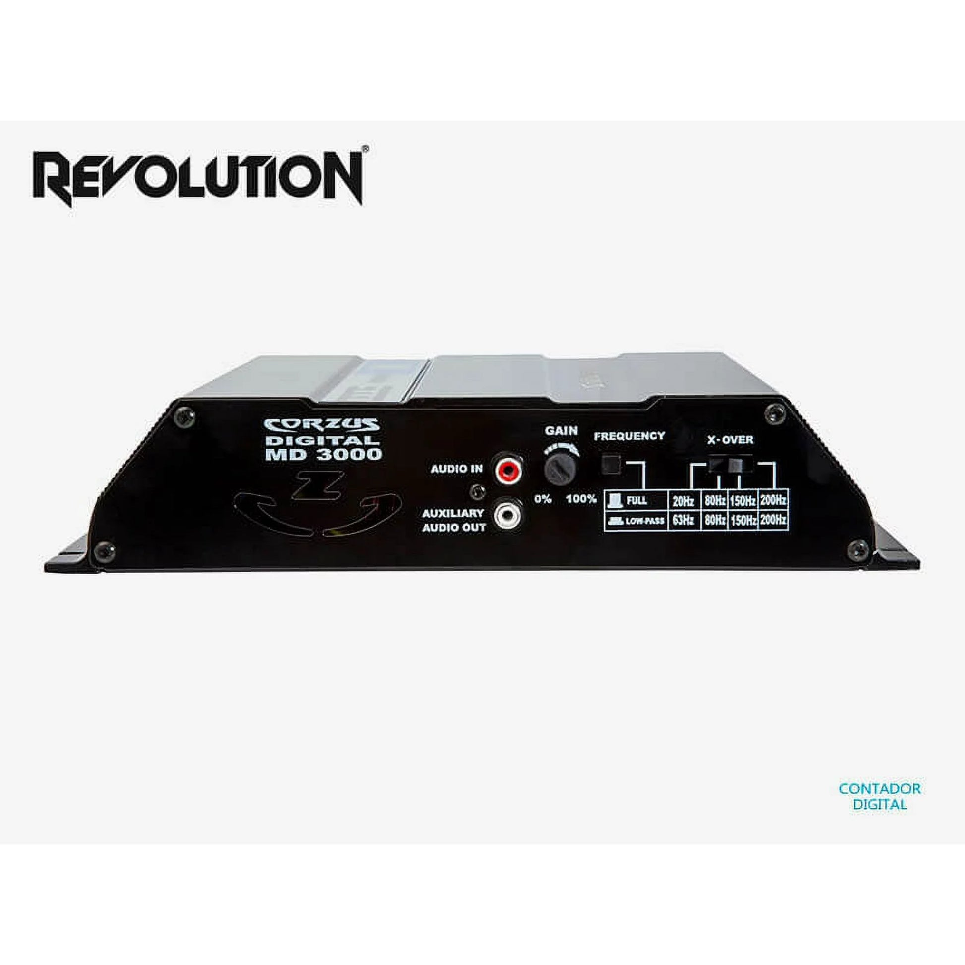 The Corzus MD3000 is a 1 channel amplifier with a total power of 3000 Watts RMS Digital Class D, very high efficiency and low noise emission controlled by DSP (digital signal processor). It features extreme audio quality and full-range frequency response from 20Hz to 8KHz, full range and low-pass active crossover with selectable frequency in 4 options. Subsonic filter, RCA inputs and various protections managed by the DSP and Display Indicator.