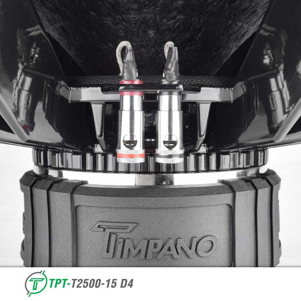 Timpano T2500 Series was designed to bring the ultimate combination of performance, durability, quality and value. Featuring incredible linear excursion, with top-grade soft parts, American Made voice coils on a colossal cast aluminum styled basket creating a new standard for powerful systems.